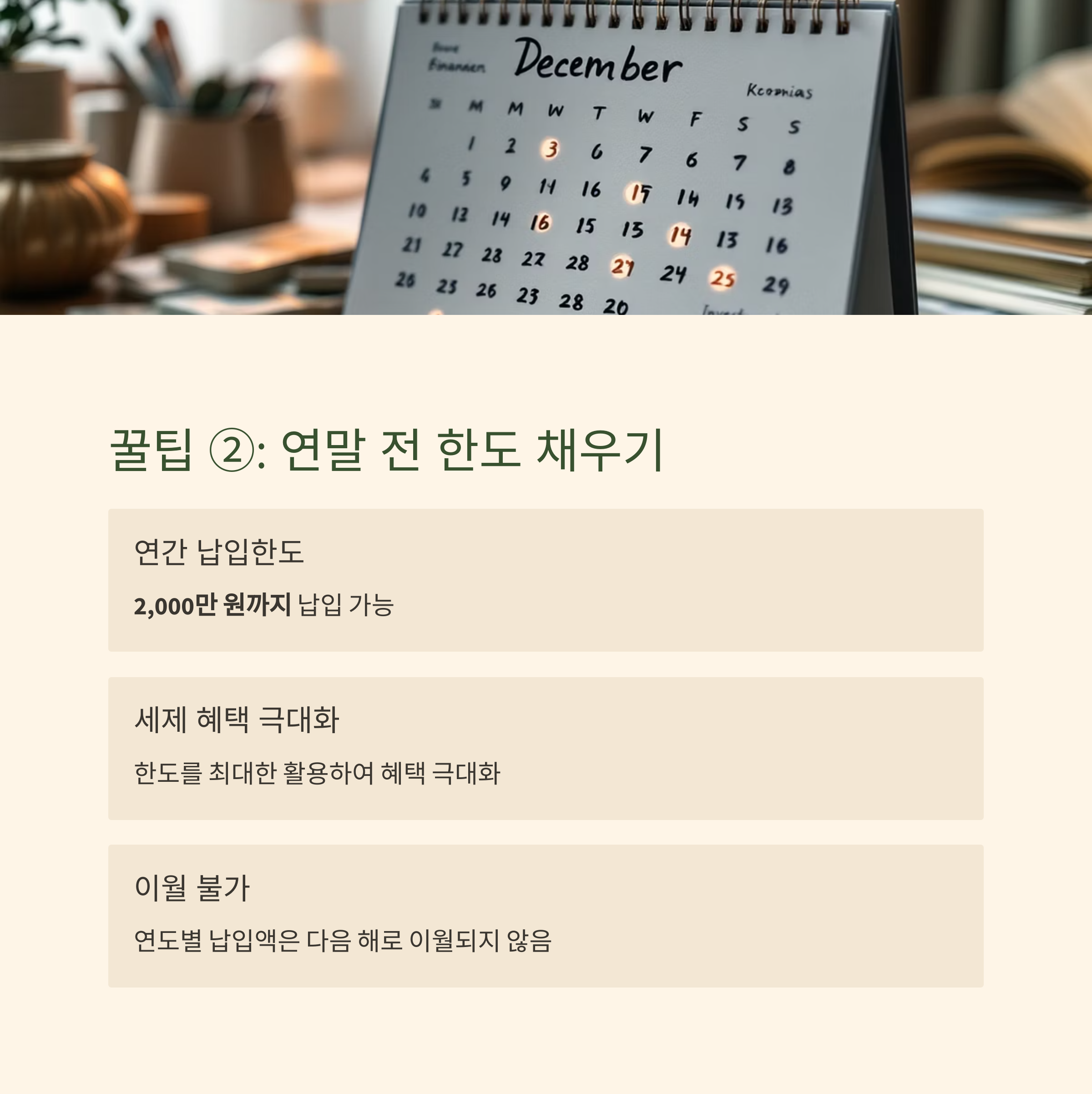 또한, 연도별 납입액은 다음 해로 이월되지 않으므로 매해 꾸준한 납입이 필요합니다.