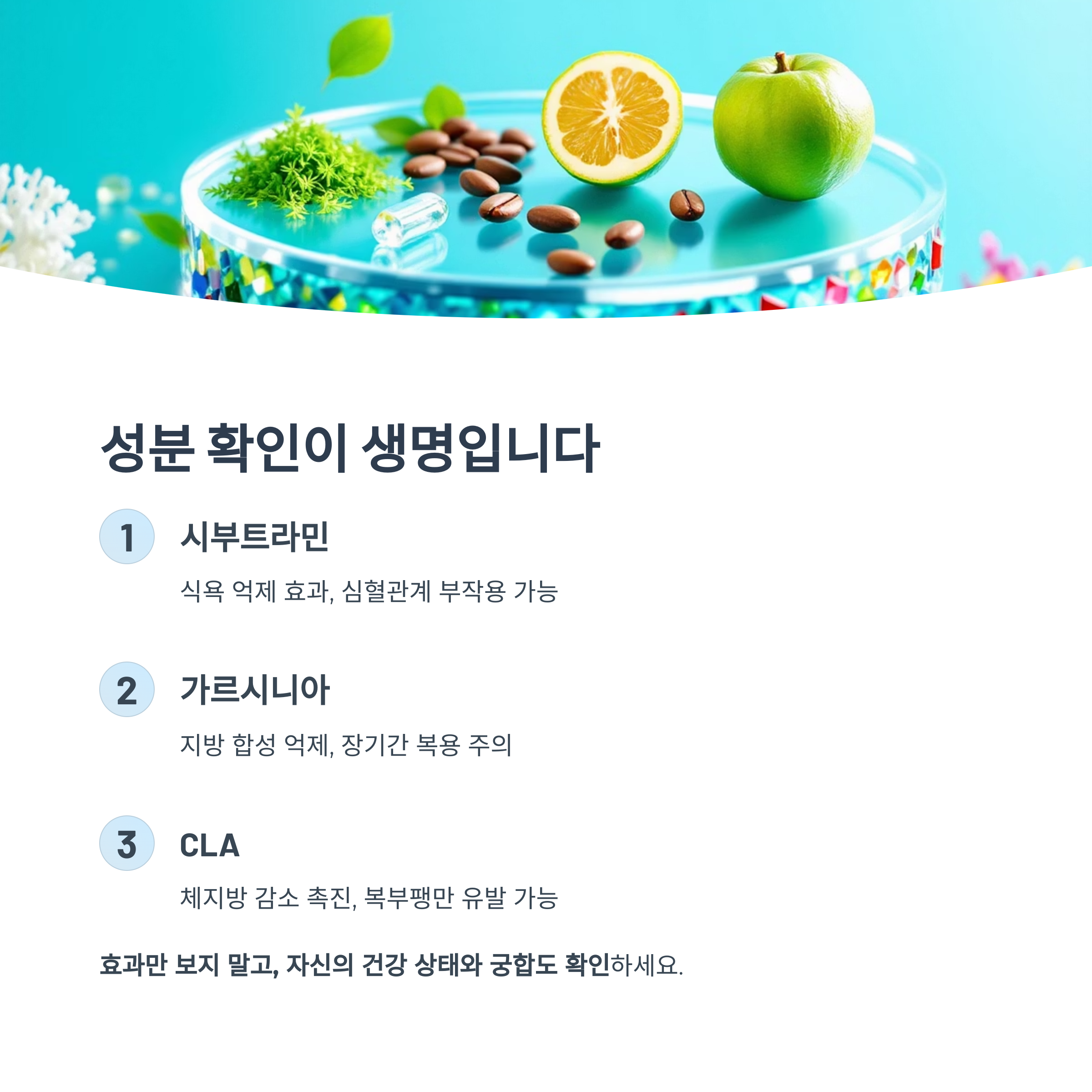 핵심: 효과만 보고 성분을 고르지 말고, 자신의 건강 상태와 궁합도 확인해야 합니다.