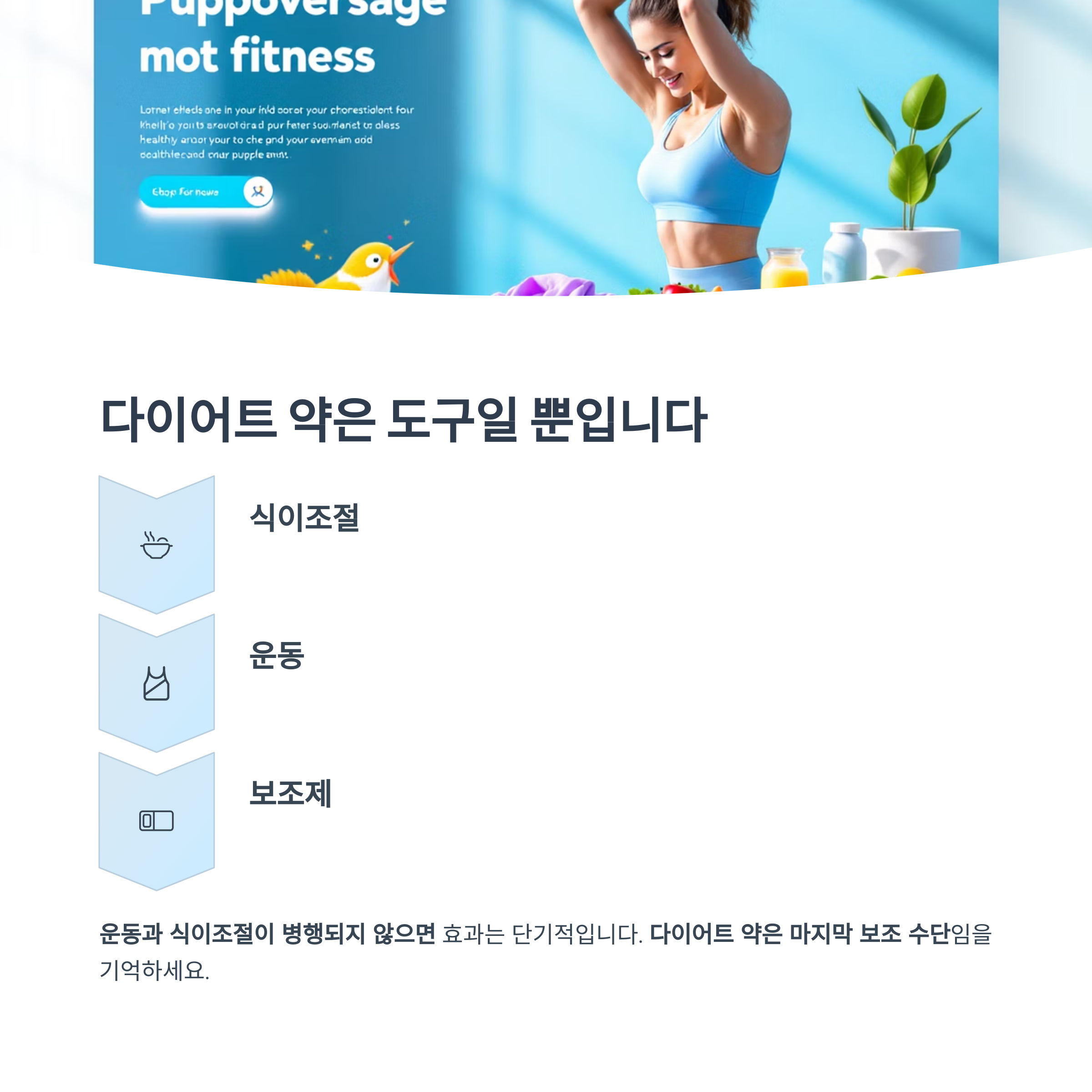 아무리 효과 좋은 다이어트 약이라도 운동과 식이조절이 병행되지 않으면 효과는 단기적입니다.