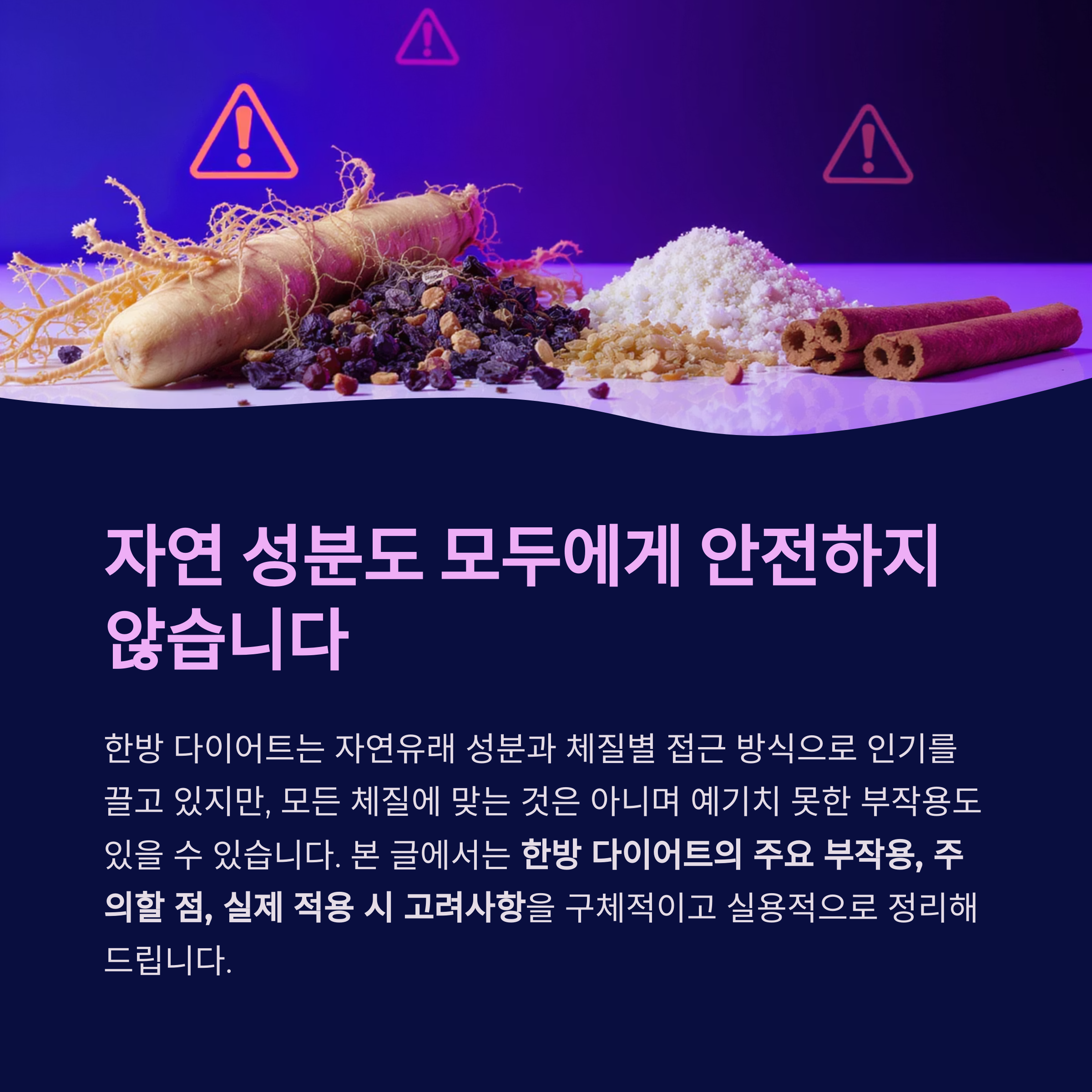 본 글에서는 한방 다이어트의 주요 부작용, 주의할 점, 실제 적용 시 고려사항을