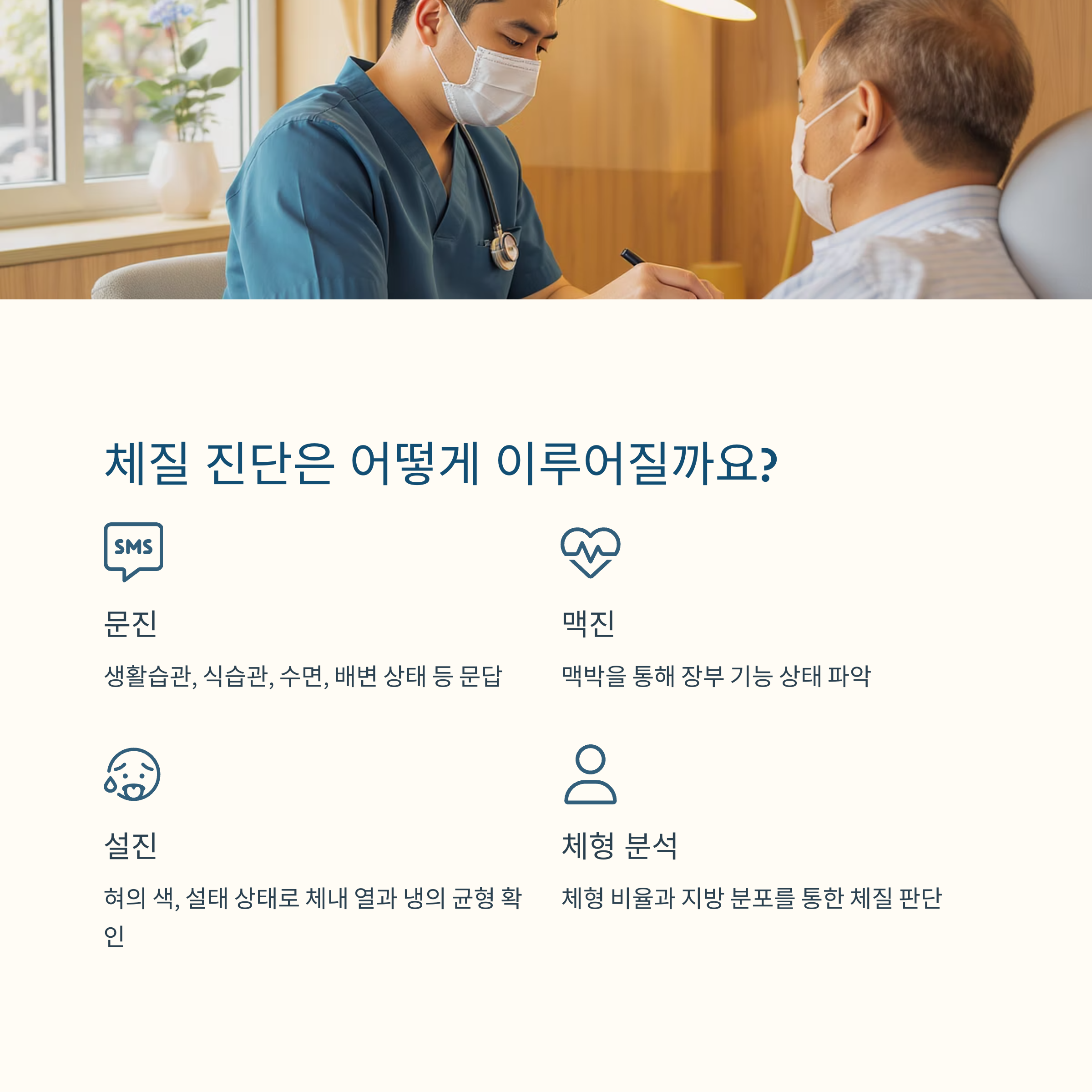 | 문진 | 생활습관, 식습관, 수면, 배변 상태 등 문답 |