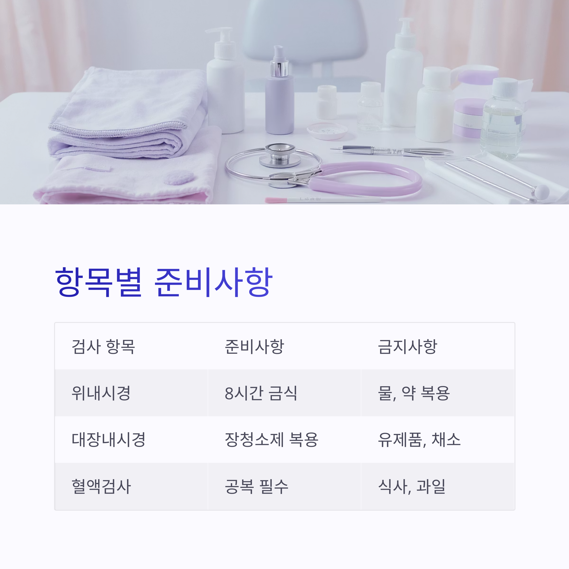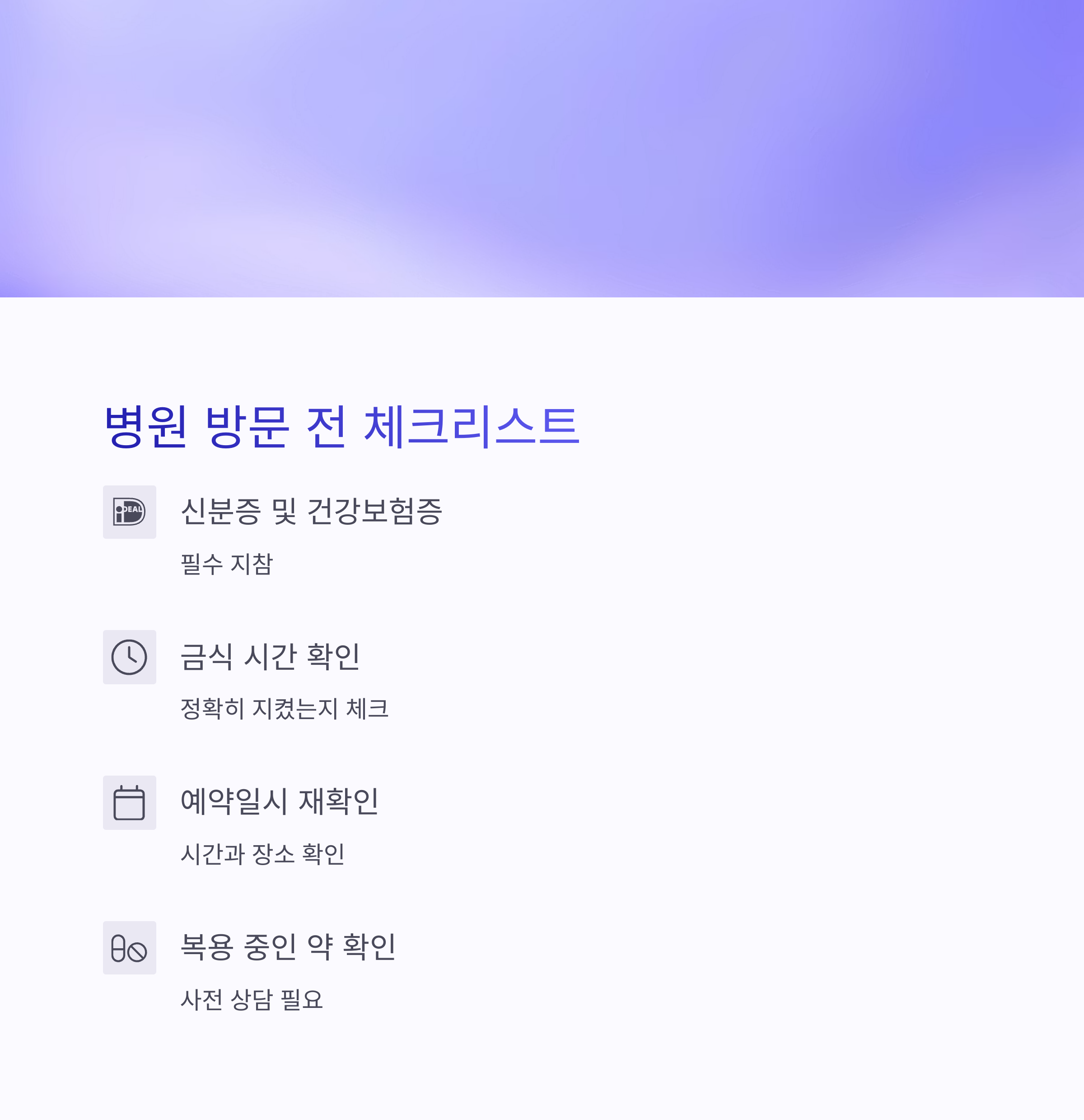 검진 항목마다 필요한 준비가 다르며, 잘못된 준비는 검진 자체가 취소되거나 재검사로 이어질 수 있습니다.