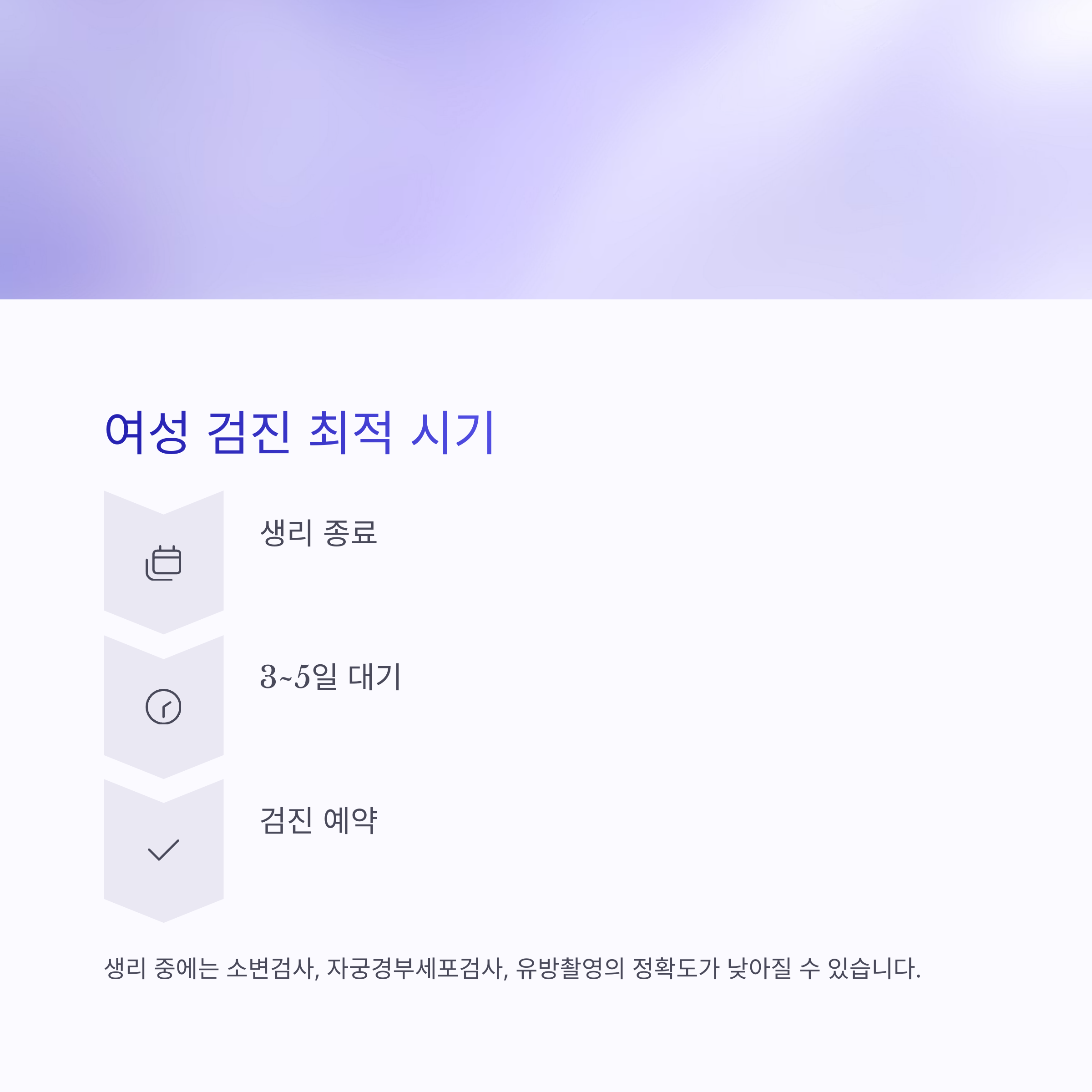 생리 종료 후 3~5일 사이에 검진을 예약하는 것이 가장 이상적입니다.