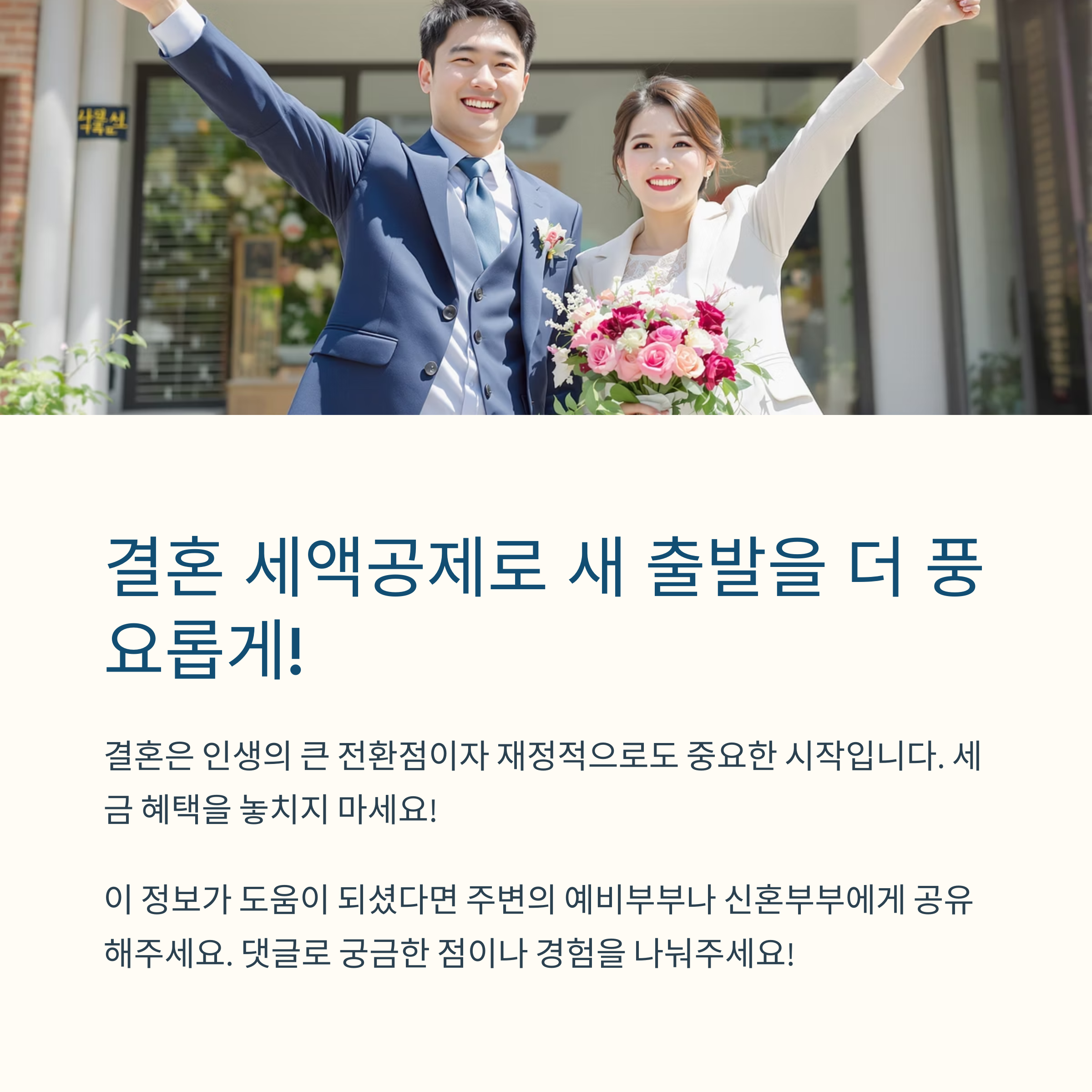 - 취득세 1억 이하 주택: 일부 지자체는 결혼 시 감면제도 운영