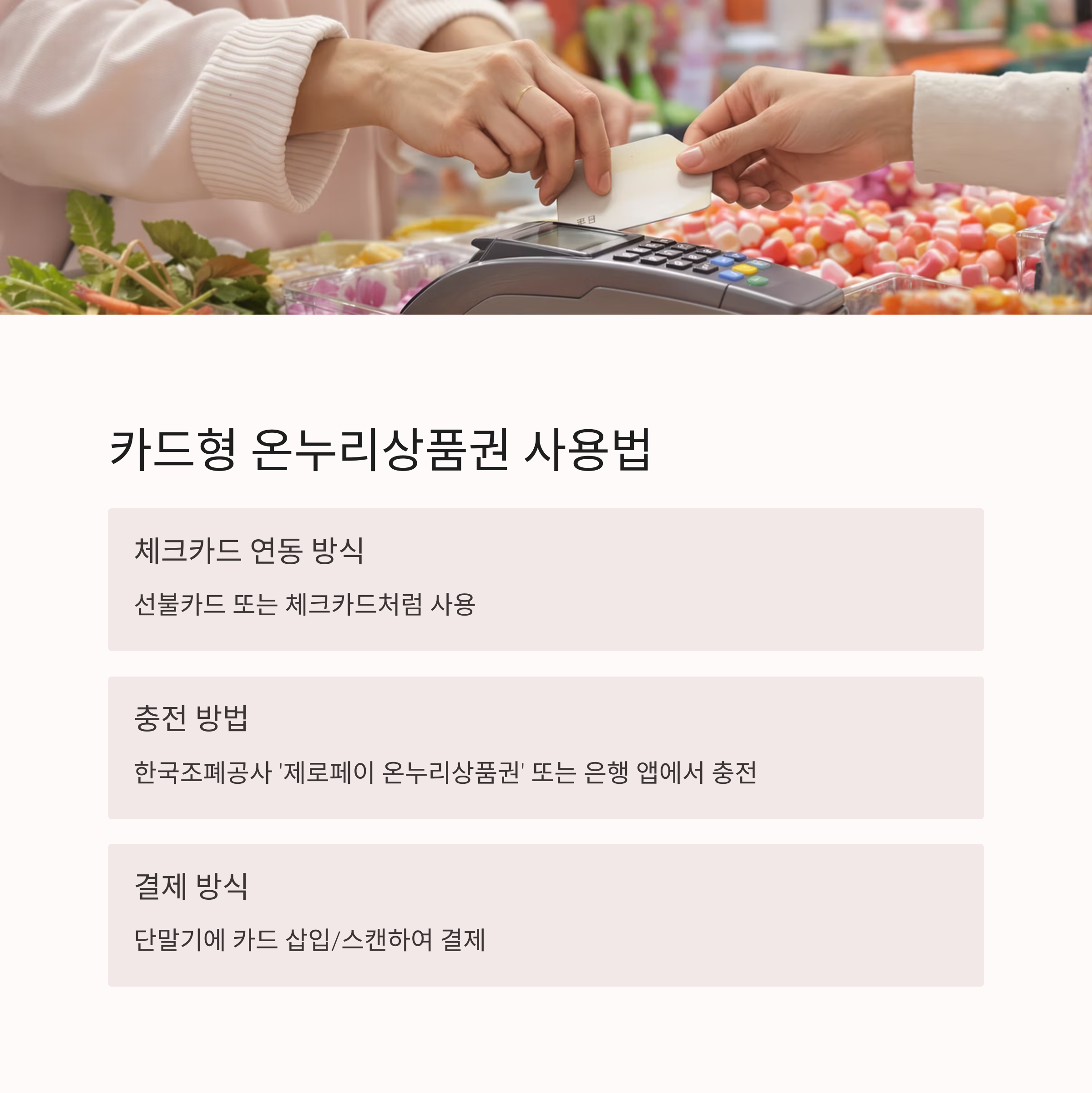 카드형 온누리상품권, 이렇게 사용합니다 (체크카드 연동 방식)