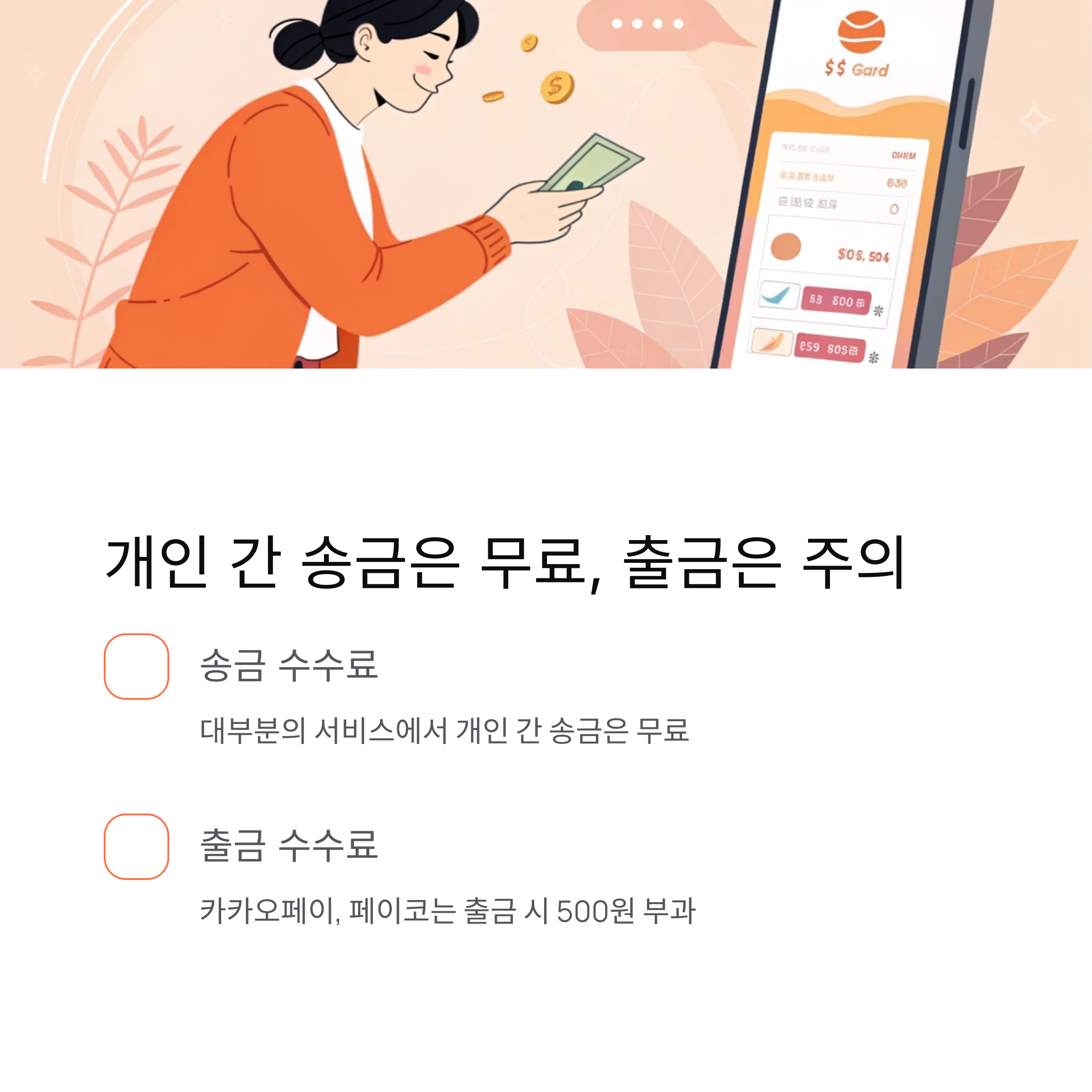 개인 간 송금: 대부분 무료지만, 출금은 주의