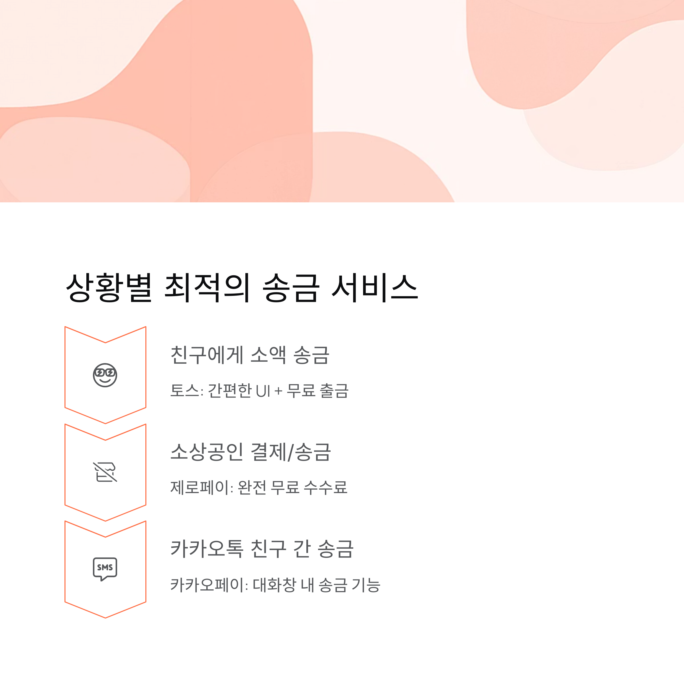 | 친구에게 소액 송금 | 토스 | 간편한 UI + 무료 출금 |