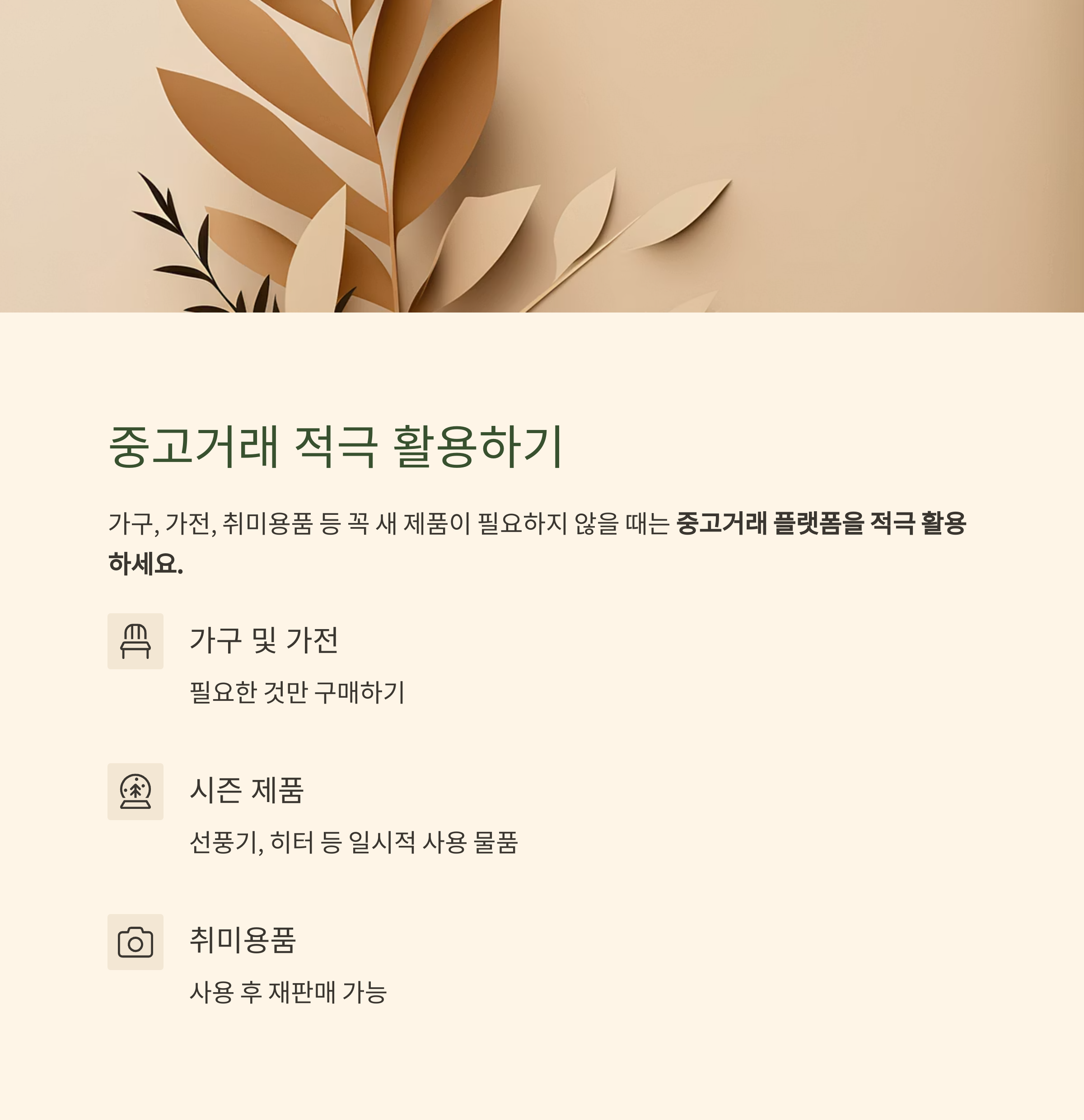 가구, 가전, 취미용품 등 꼭 새 제품이 필요하지 않을 때는