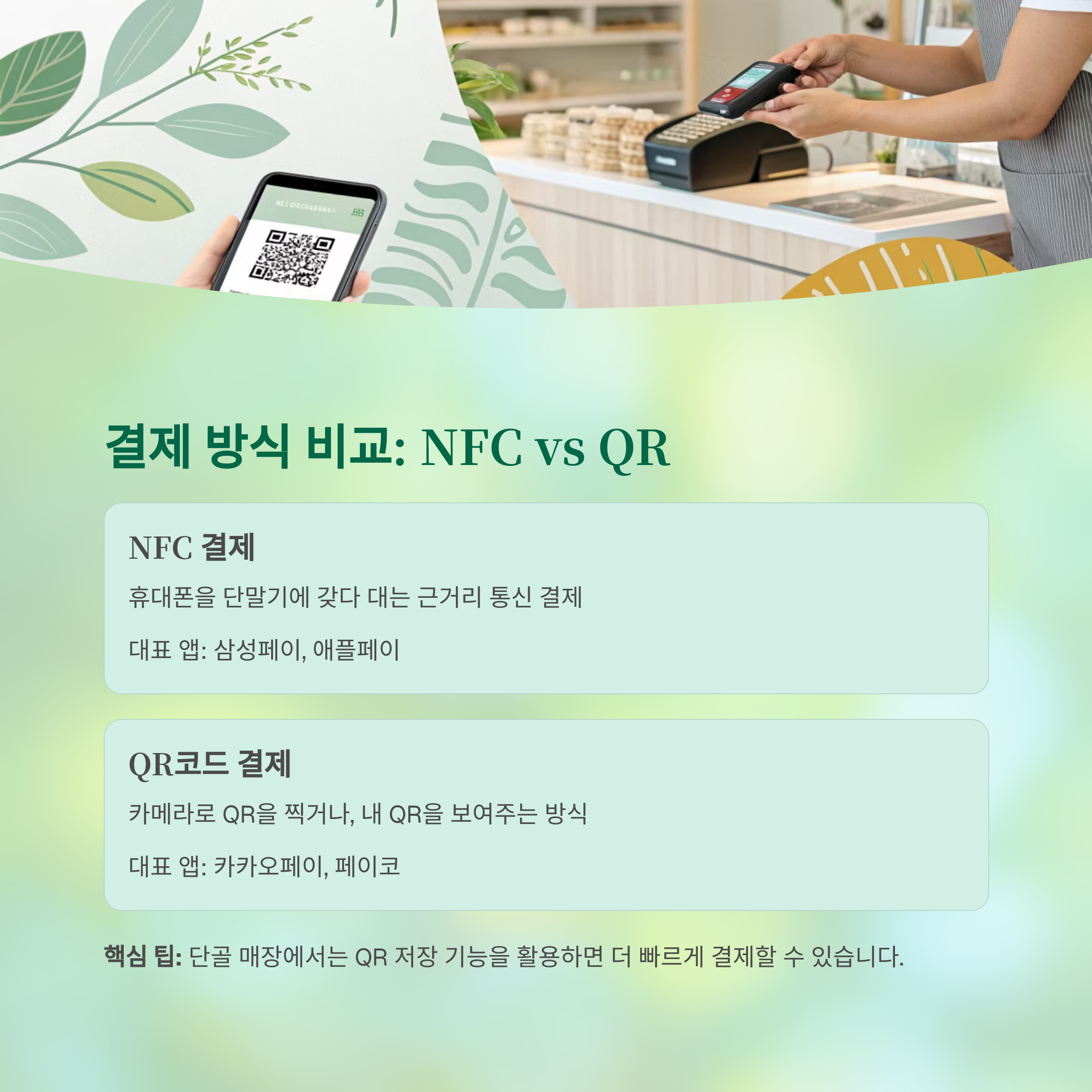 핵심 팁: 단골 매장에서는 QR 저장 기능을 활용하면 더 빠르게 결제할 수 있습니다.